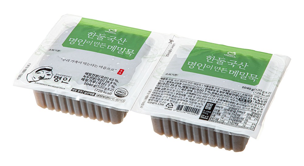국내산 재료를 사용해 명인이 만든 메밀묵입니다. 잘 부서지지 않고 탱글탱글한 식감과 구수한 맛이 매력적이에요. 좋은 재료만을 넣고, 명인의 노하우와 정성을 다해 만든 묵은 그대로만 먹어도 맛있답니다. 투박한 모양에 담긴 깊고 고소한 풍미는 쉽게 접할 수 없는 맛을 경험하게 합니다. 입안 가득 차는 묵만큼이나 마음까지 풍족해지는 한둘 메밀묵을 만나보세요.