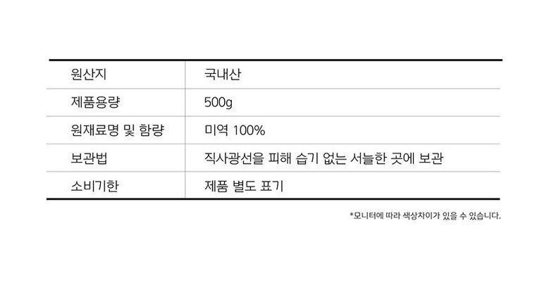 | 생산자(수입자) | 상품 상세페이지 참조 | 원산지 | 국내산(완도) |
