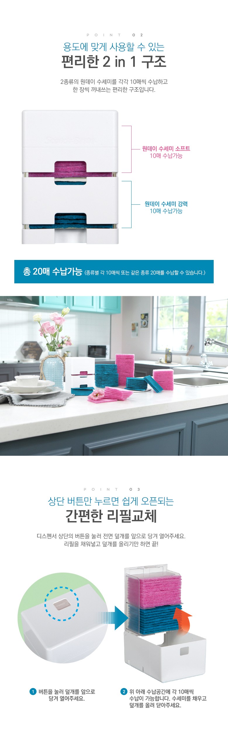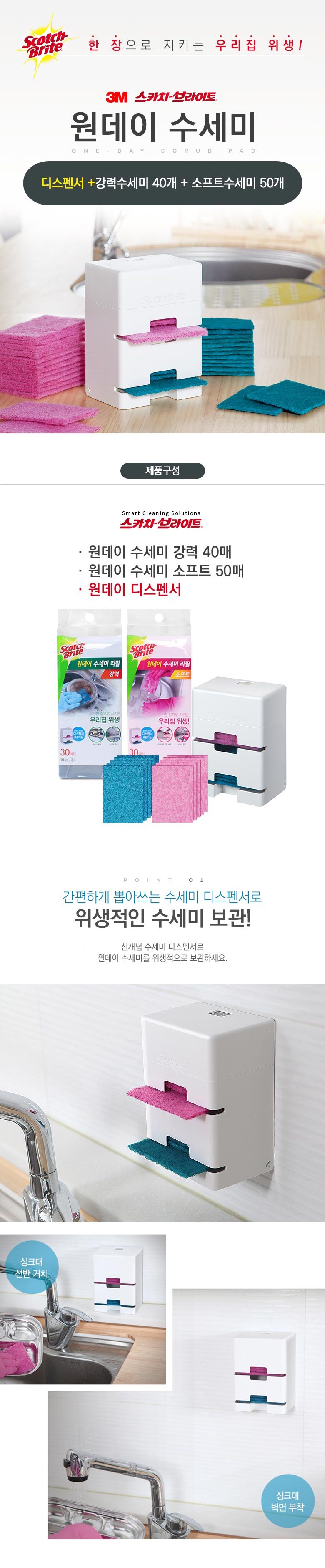 | 구성품 | [3M]일회용 원데이 수세미 디스펜서+강력 40매+소프트50매 | 크기 | 컨텐츠참조 |