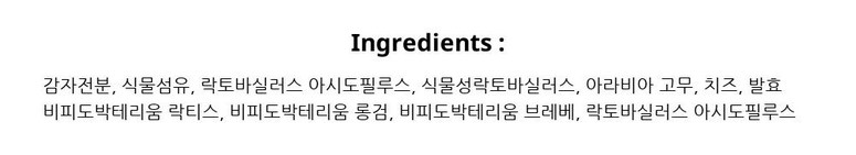 | 제품명 | 상품 상세페이지 참조 | 식품의 유형 | 상품 상세페이지 참조 |