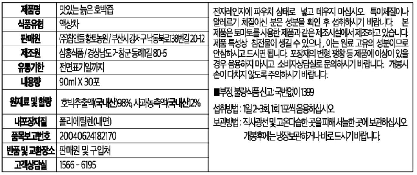 | 생산자 및 소재지 | 컨텐츠 참조 | 제조연월일, 소비기한 또는 품질유지기한 | 업데이트 예정 |