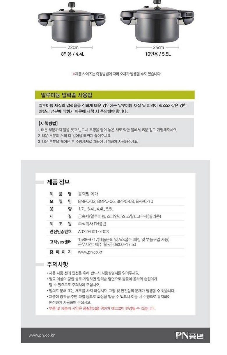 | 품명 및 모델명 | 블랙펄 메가 압력솥 | 재질 | 상세페이지 참조 |