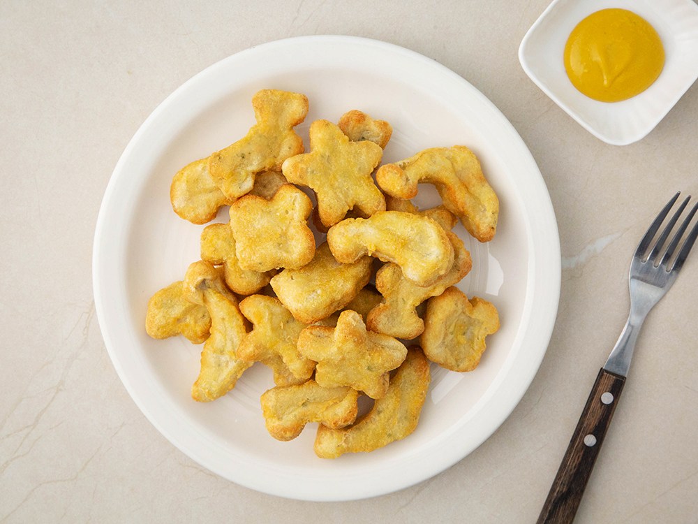 부드럽고 담백한 풍미의 치킨너겟을 소개할게요. 쫄깃한 육질이 일품이죠. 노릇노릇하게 튀겨내면 겉은 바삭하고 속은 촉촉한 식감을 즐기실 수 있답니다. 귀여운 모양으로 만들어져 아이들 간식으로 제격이에요.