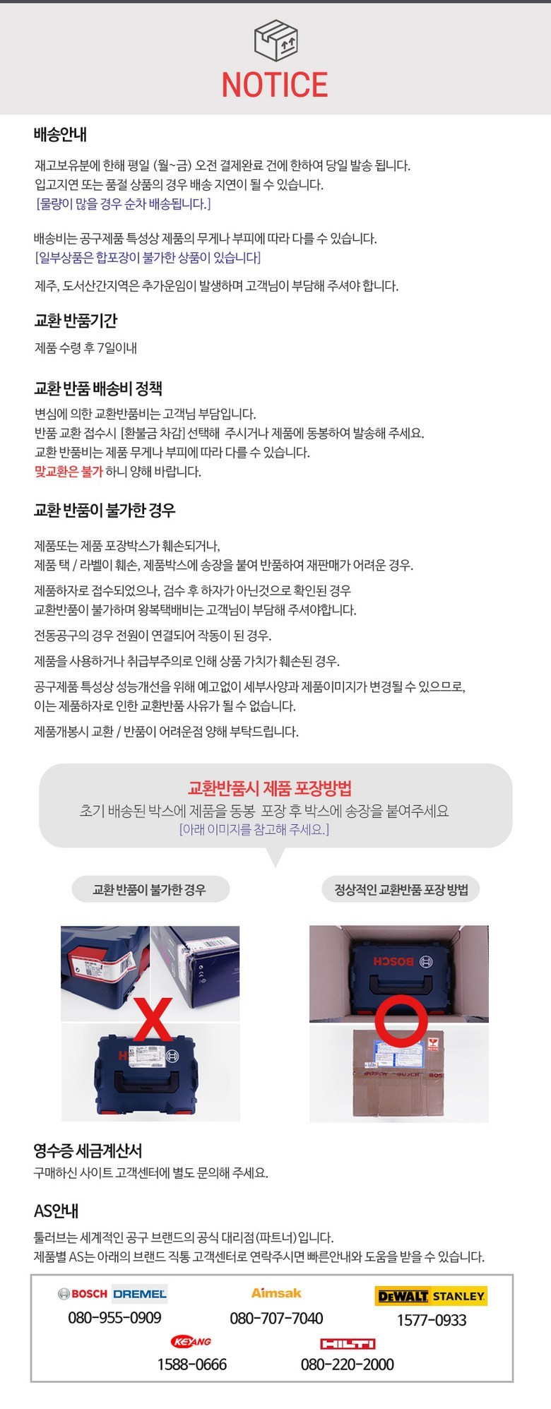 - ㆍ교환/반품에 관한 일반적인 사항은 판매자가 제시사항보다 관계법령이 우선합니다.
