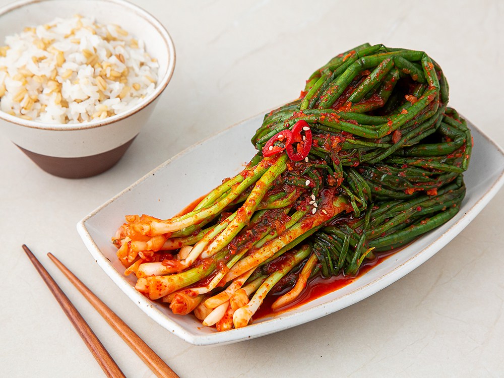 알싸하고 시원한 내음이 입안 가득 퍼지는 파김치예요. 아삭아삭한 파에 맛깔스러운 양념을 더해 매콤한 감칠맛을 자랑하지요. 입맛에 맞게 익혀 드시면 더욱 깊은 맛의 김치를 드실 수 있답니다. 청량하고 향긋한 파김치로 식탁을 풍성하게 채워보세요.