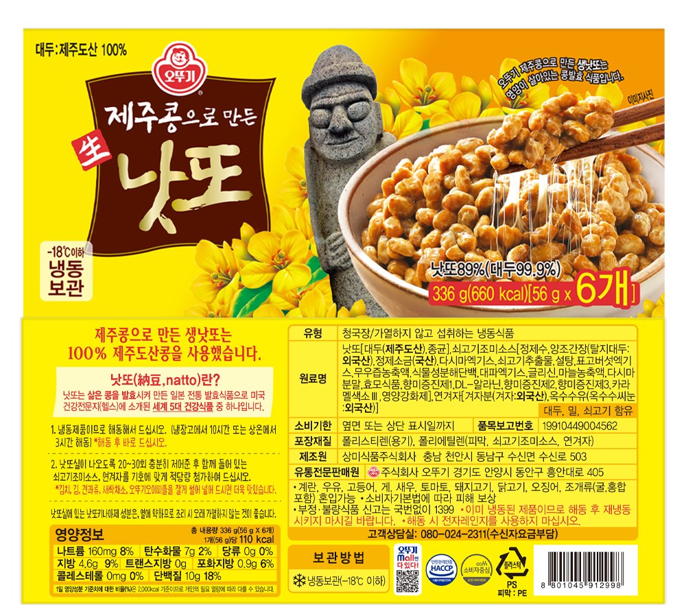 | 제품명 | 제주콩으로 만든 생낫또 | 식품의 유형 | 컨텐츠 참조 |