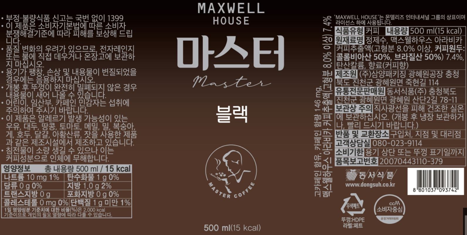 | 포장단위별 내용물의 용량(중량), 수량 | 500ml x 72개 | 원재료명 및 함량 | 컨텐츠 참조 |