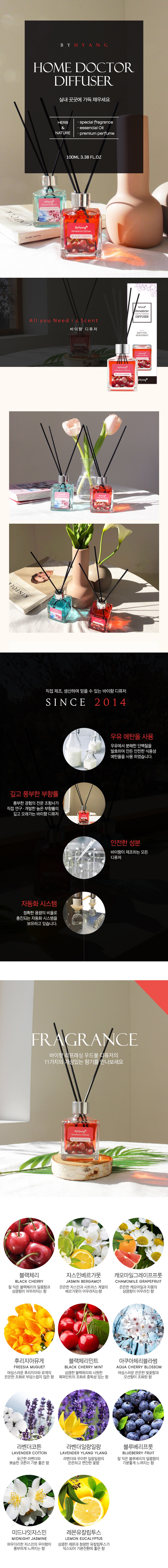 | 품목 및 제품명 | 방향제/바이향 홈 디퓨저(레몬 유칼립투스) | 용도(표백제의 경우 계열을 함께표시) 및 제형 | 자동차용-실내용,일반용-실내공간용/비분사형-액체형 |