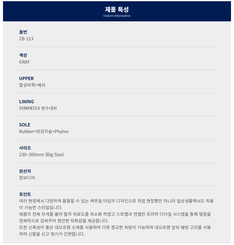 | 제조국 | 상품 상세페이지 참조 | 취급시 주의사항 | 상품 상세페이지 참조 |