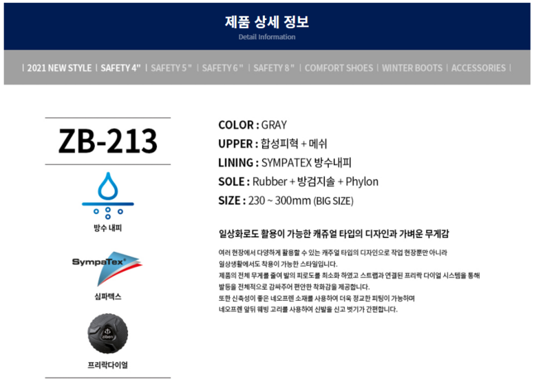 | 제품의 주소재(운동화인 경우에는 겉감,안감을 구분하여 표시) | 상품 상세페이지 참조 | 색상 | 상품 상세페이지 참조 |