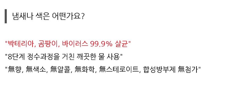 | 교환/반품 신청 기준일 | ㆍ단순변심에 의한 교환/반품은 제품 수령 후 7일 이내까지, 교환/반품 제한사항에 해당하지 않는 경우에만 가능 (배송비용과 교환/반품 비용 왕복배송비 고객부담) ㆍ상품의 내용이 표시·광고의 내용과 다른 경우에는 상품을 수령한 날부터 3개월 이내, 그 사실을 안 날 또는 알 수 있었던 날부터 |