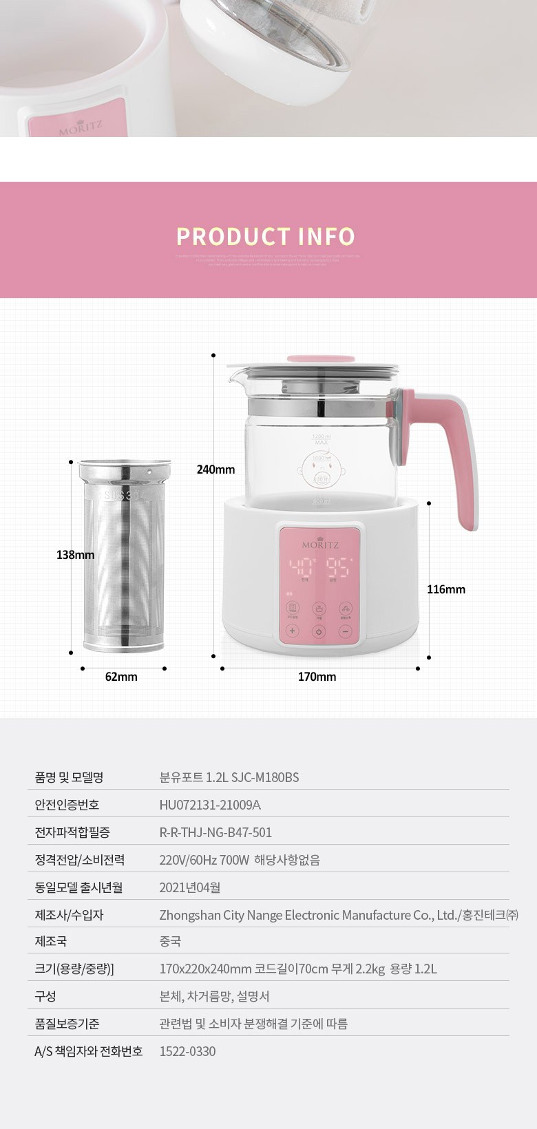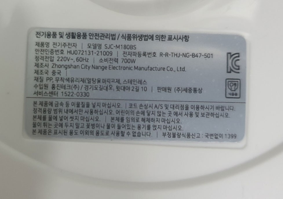 | 품명 및 모델명 | 분유포트 / SJC-M180BS | KC 인증정보 | HU072131-21009A, R-R-THJ-NG-B47-501 |