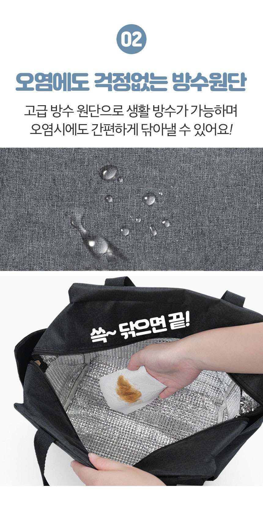 - 관리 지침: 닦아서 세척