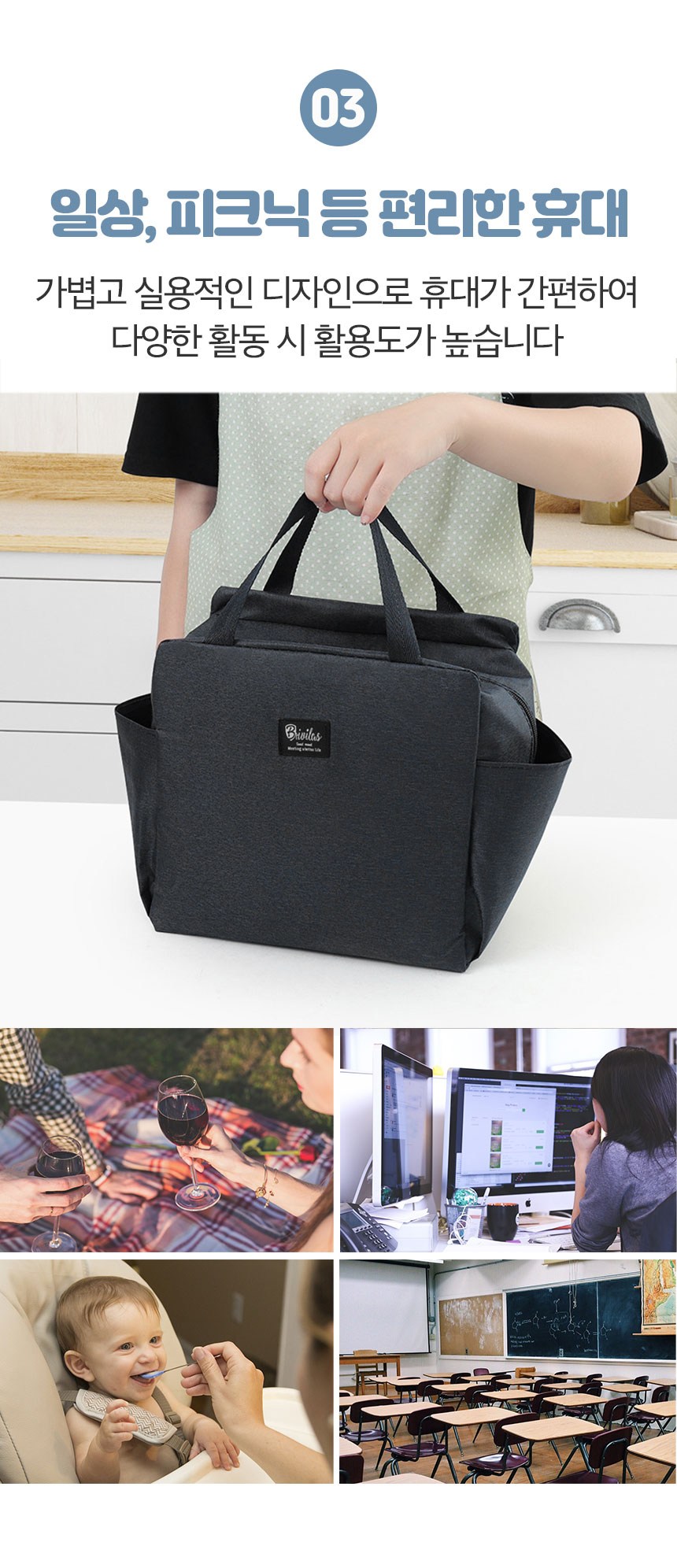 | 품명 및 모델명 | 해피위더스 휴대용 보온보냉 도시락 가방 블랙 1개 | 재질 | 컨텐츠참조 |