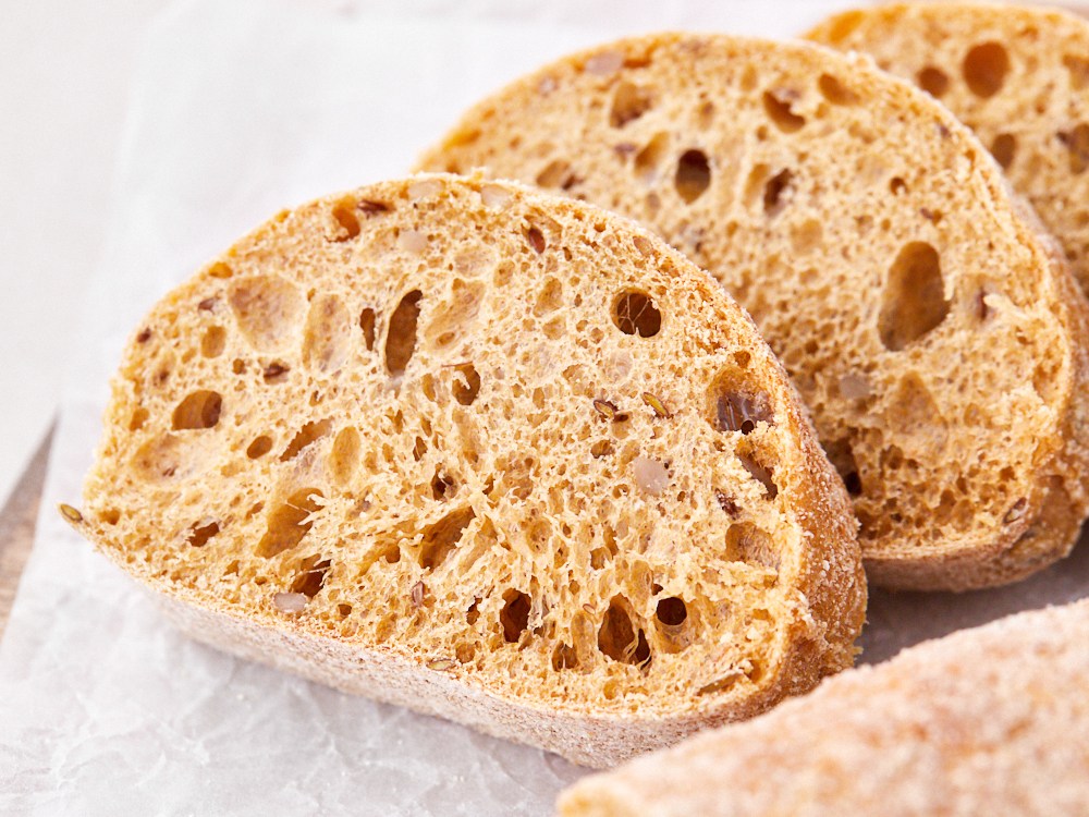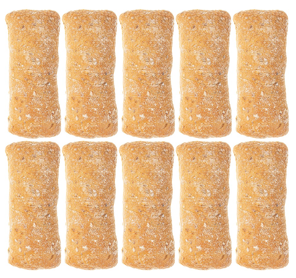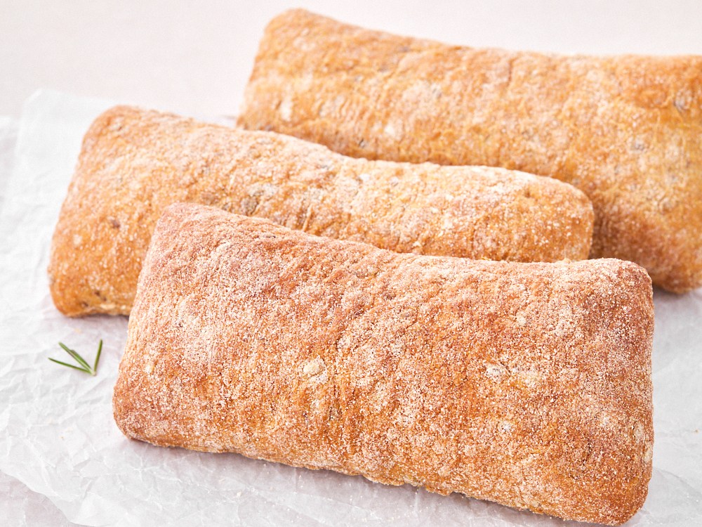 겉은 바삭바삭, 속은 쫄깃쫄깃한 치아바타예요. 해바라기씨, 아마씨가 콕콕 박혀 고소한 풍미가 솔솔 풍긴답니다. 엄선한 밀가루와 호밀 분말 등으로 정성껏 반죽해 건강하고 담백한 맛이 참 좋지요.
