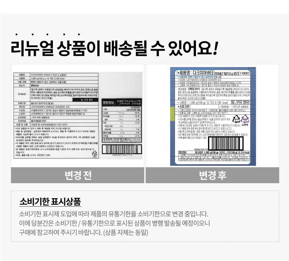 | 생산자 및 소재지 | 컨텐츠 참조 | 소비기한 또는 품질유지기한 | 소비기한(또는 유통기한) : 2026년 06월 10일 이거나 그 이후인 상품 |