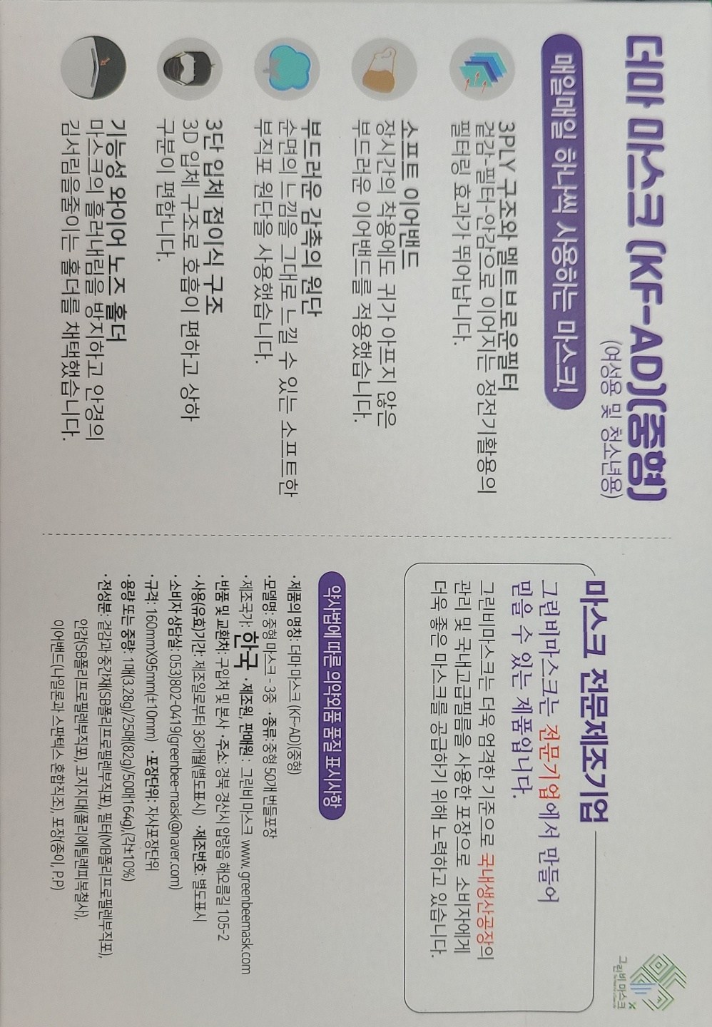 | 제조국(원산지) | 한국 | 제조자(수입자) | 그린비 마스크 |