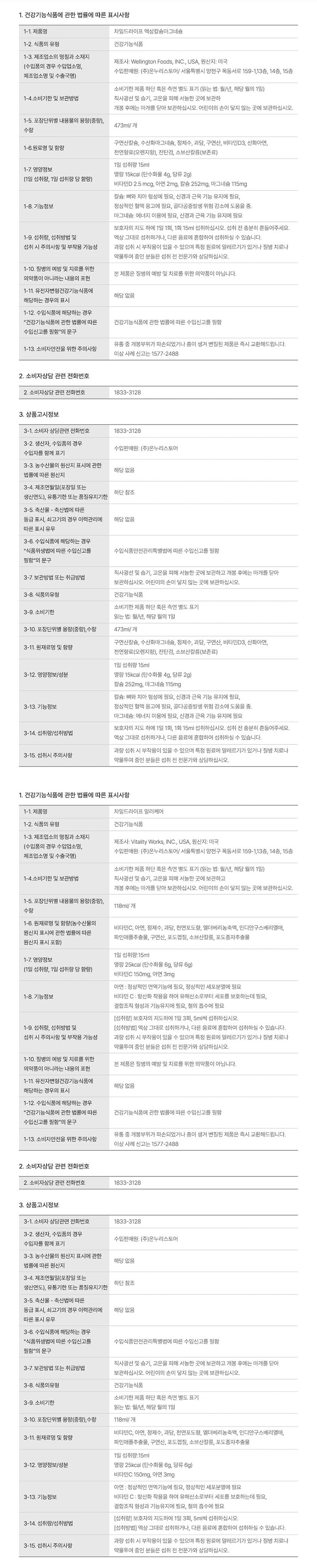 - 건강식품 성분: 단일영양제