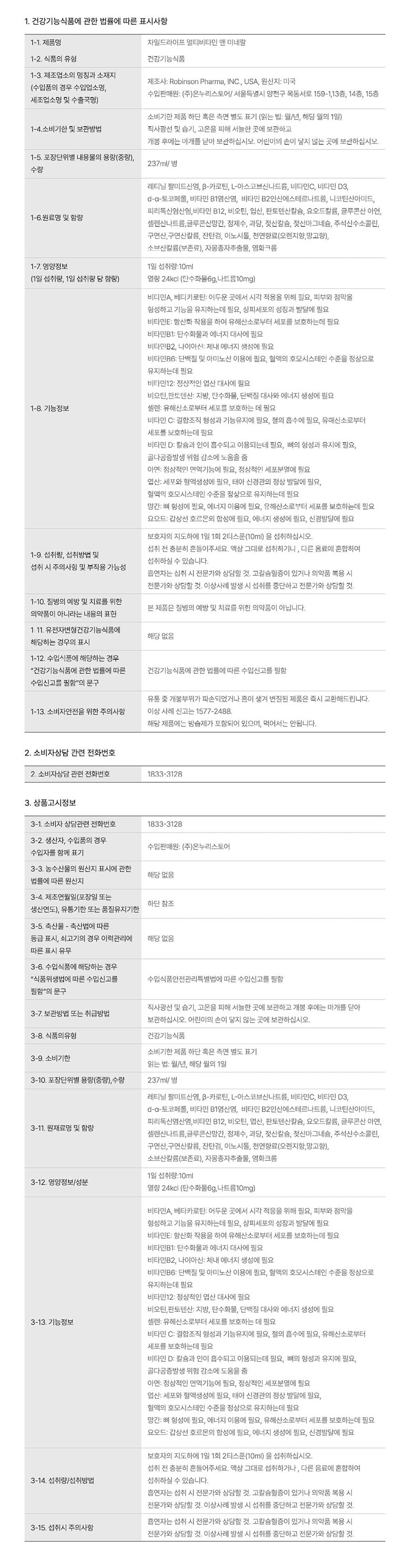 - 건강식품 사용대상: 유아/어린이