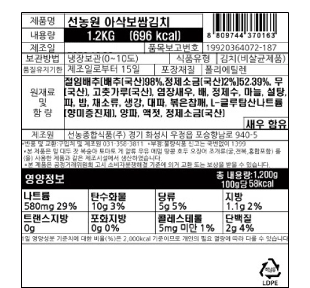 고소하고 담백한 보쌈과 찰떡궁합을 자랑하는 보쌈김치예요. 신선한 절임배추에 맛깔스러운 양념을 더해 정성껏 담갔어요. 칼칼하면서도 은은한 단맛이 느껴져 육류 요리에 곁들이기 좋답니다. 보쌈과 함께 드셔도 좋고, 국수, 수육과 함께 즐기셔도 좋아요.