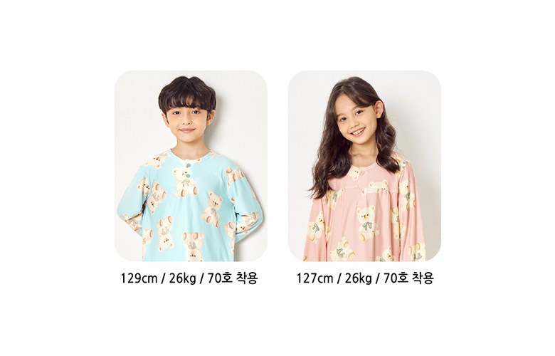 | 품명 및 모델명 | 아동용 큐티베어 양면기모 수면잠옷 상하세트 | KC 인증정보 | 해당없음 |
