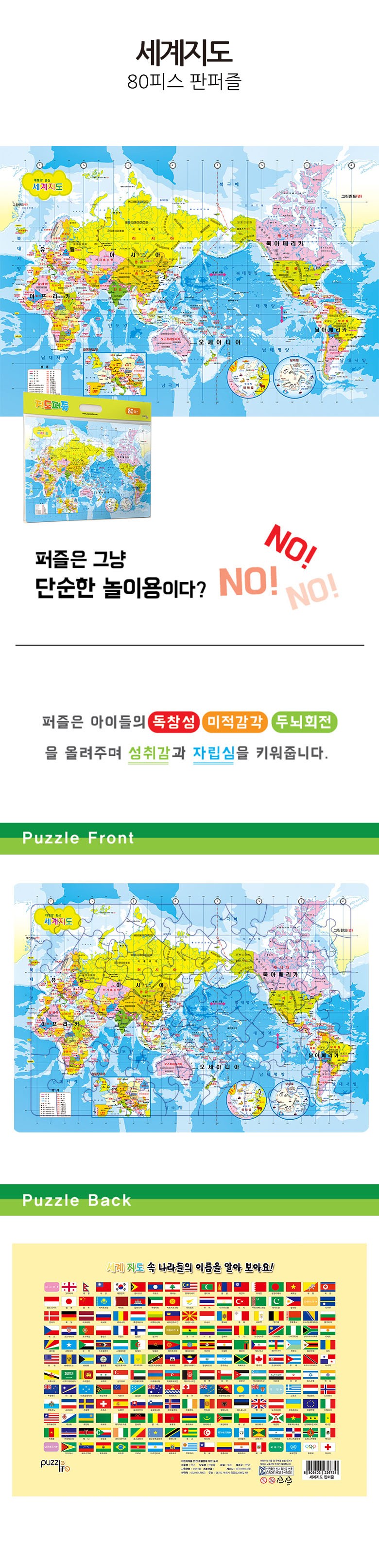 퍼즐라이프 세계지도 판퍼즐, 80피스, 1개