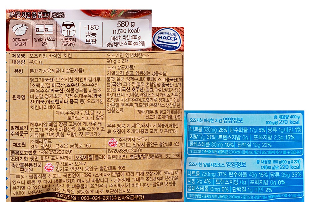 | 포장단위별 내용물의 용량(중량), 수량 | 580g x 4개 | 원재료명 및 함량 | 컨텐츠 참조 |