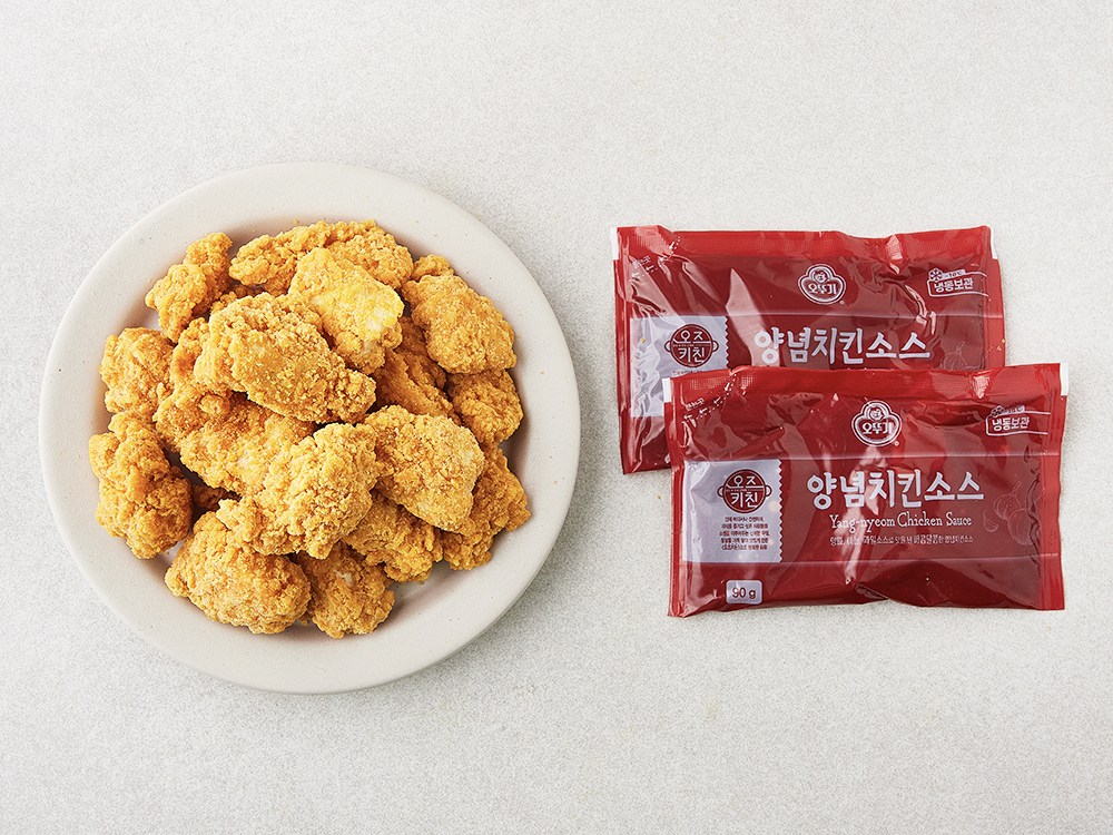 매콤하고 달짝지근한 양념치킨을 가정에서 손쉽게 만들어보세요. 양념치킨 소스가 동봉되어 있어 간편하답니다. 에어프라이어 등으로 조리하기만 하면, 겉은 바삭하고 속은 촉촉한 치킨이 금세 완성되지요. 간식으로 드셔도 좋고, 술안주로 활용해도 좋아요.