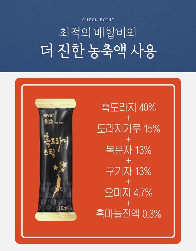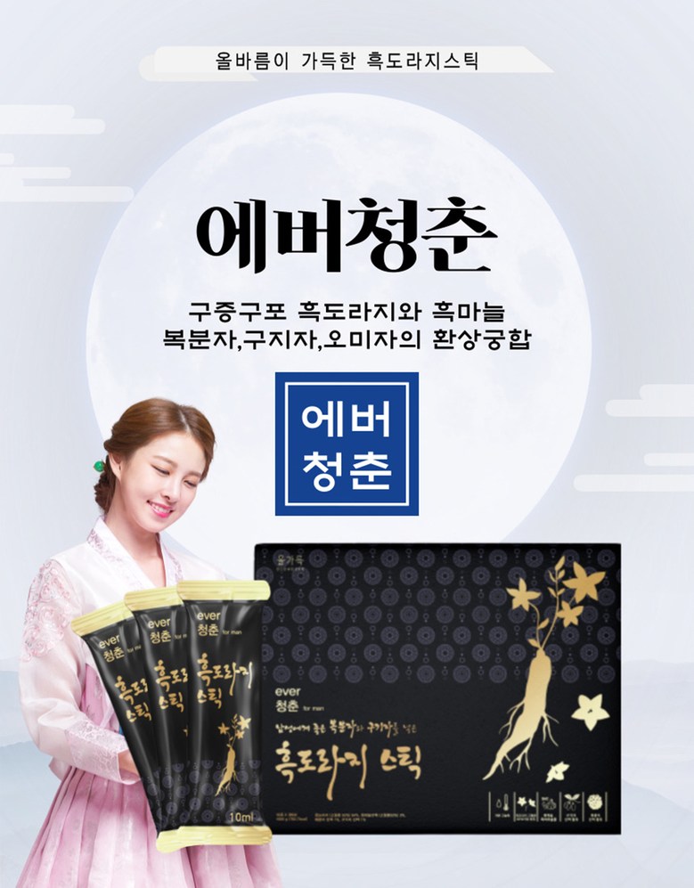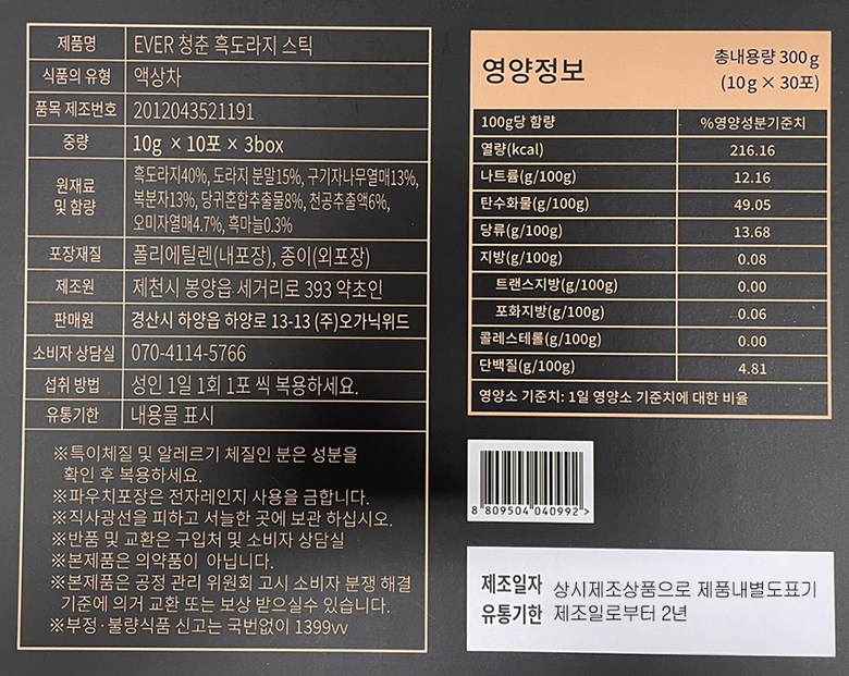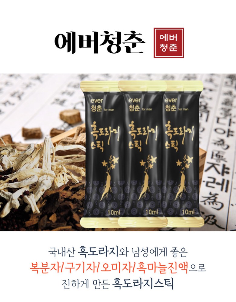 | 제품명 | 에버청춘 흑도라지스틱 | 식품의 유형 | 컨텐츠참조 |