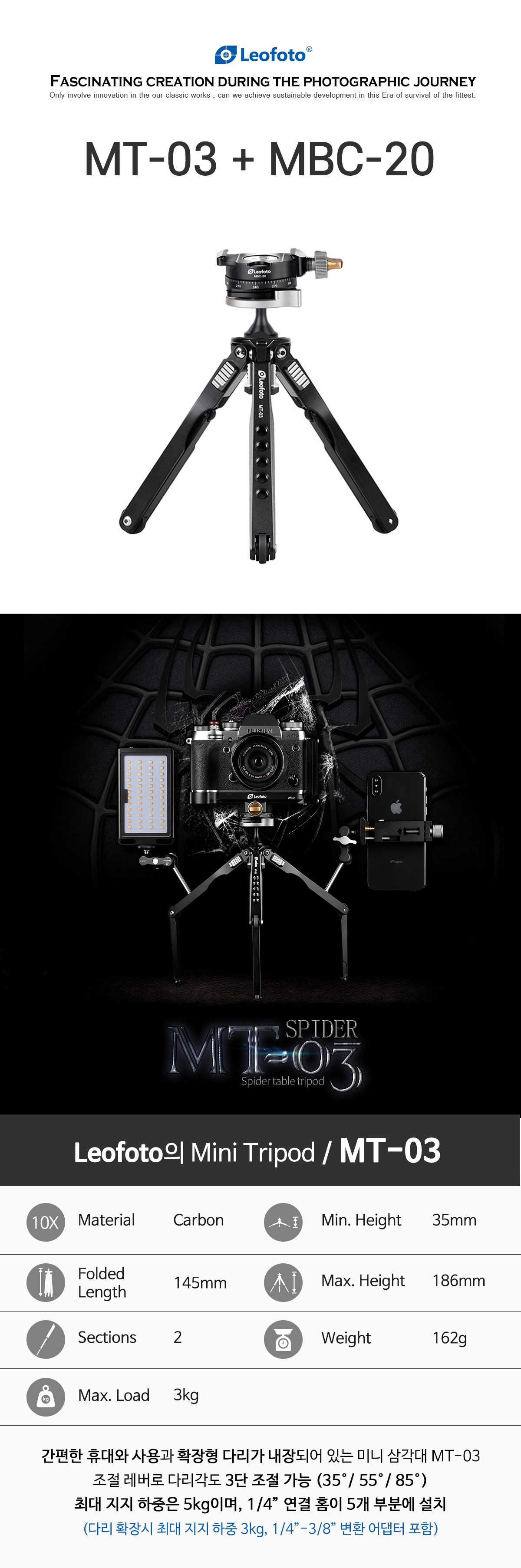 | 품명 및 모델명 | 레오포토 미니삼각대 세트 / MT-03 + MBC-20 | 인증/허가 사항 | 해당없음 |