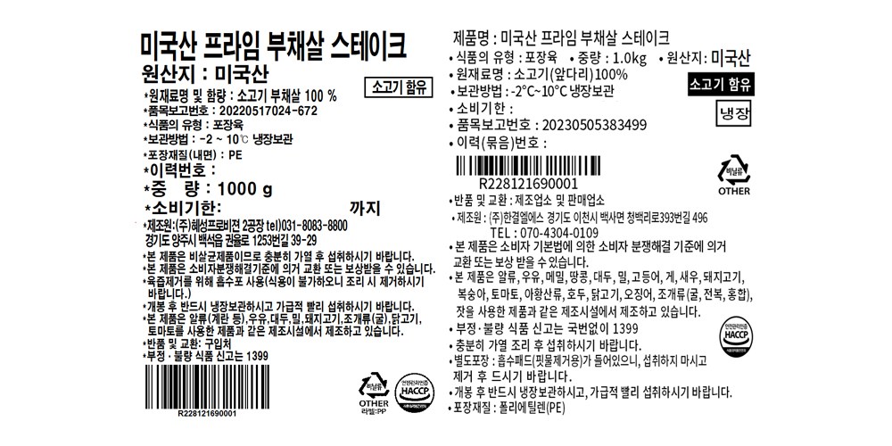 | 제조연월일, 소비기한 또는 품질유지기한 | 소비기한(또는 유통기한) : 2026년 03월 23일 이거나 그 이후인 상품 제조년월일 : 2026년 03월 17일 이후인 제조상품 | 세부 품목군별 표시사항 | 축산물 등급표시 : 해당 없음 / 이력번호 표시유무 : 이력번호 표시제품임 |
