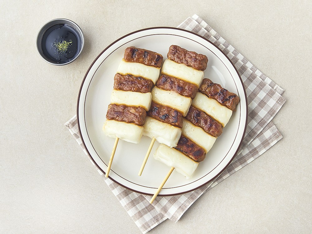 짭조름한 갈비와 쫄깃한 떡이 번갈아 가며 꽂혀 있는 갈떡궁합이에요. 쫀득쫀득한 떡과 부드러운 갈비를 동시에 맛보면, 두 재료가 어우러져 풍성한 식감을 느낄 수 있어요. 노릇노릇 먹음직스럽게 조리한 뒤 동봉된 바베큐 소스를 곁들이면 감칠맛이 배가 될 거예요. 간편한 간식이나 술안주로 즐겨 보세요.