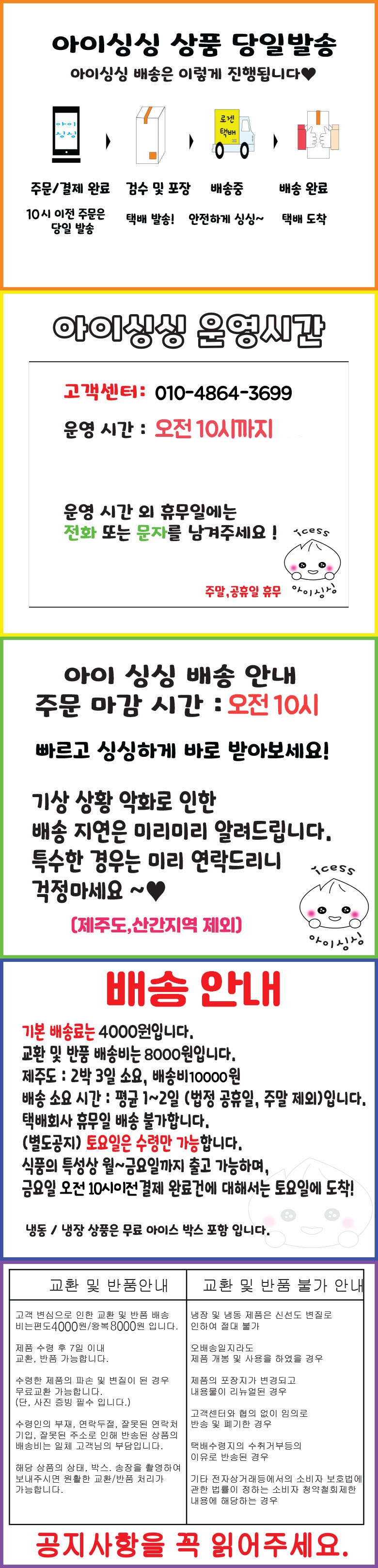 | 배송방법 | 순차배송 | 배송비 | 무료배송 · 도서산간 추가 배송비 - 제주 지역: 3,000원 - 도서산간 지역: 3,000원 |