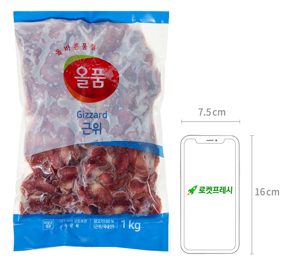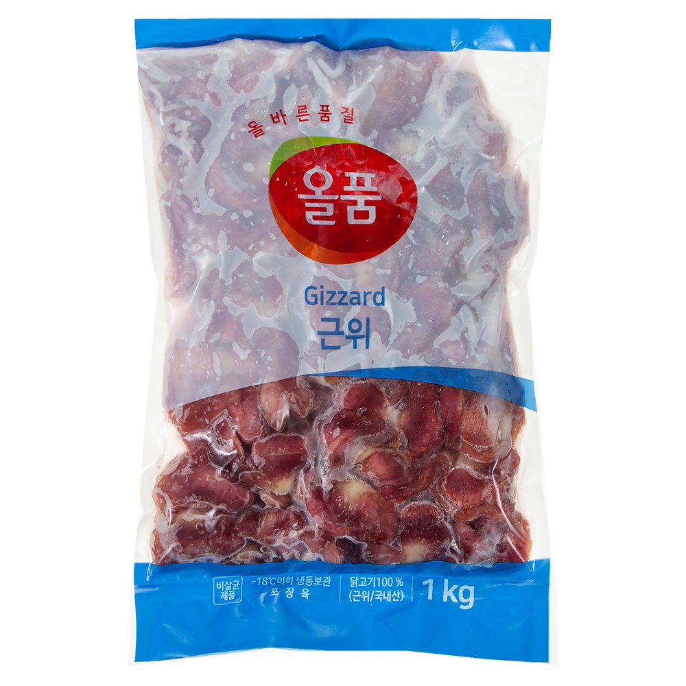 쫄깃한 식감과 고소한 감칠맛이 매력인 근위. 건강한 닭의 근위만을 담은 올품의 제품으로 만나보세요. 알싸한 마늘을 더하거나, 매콤한 양념에 버무려 볶아 먹으면 맛있어요. 다양하게 요리해 근위의 맛을 즐겨보세요.