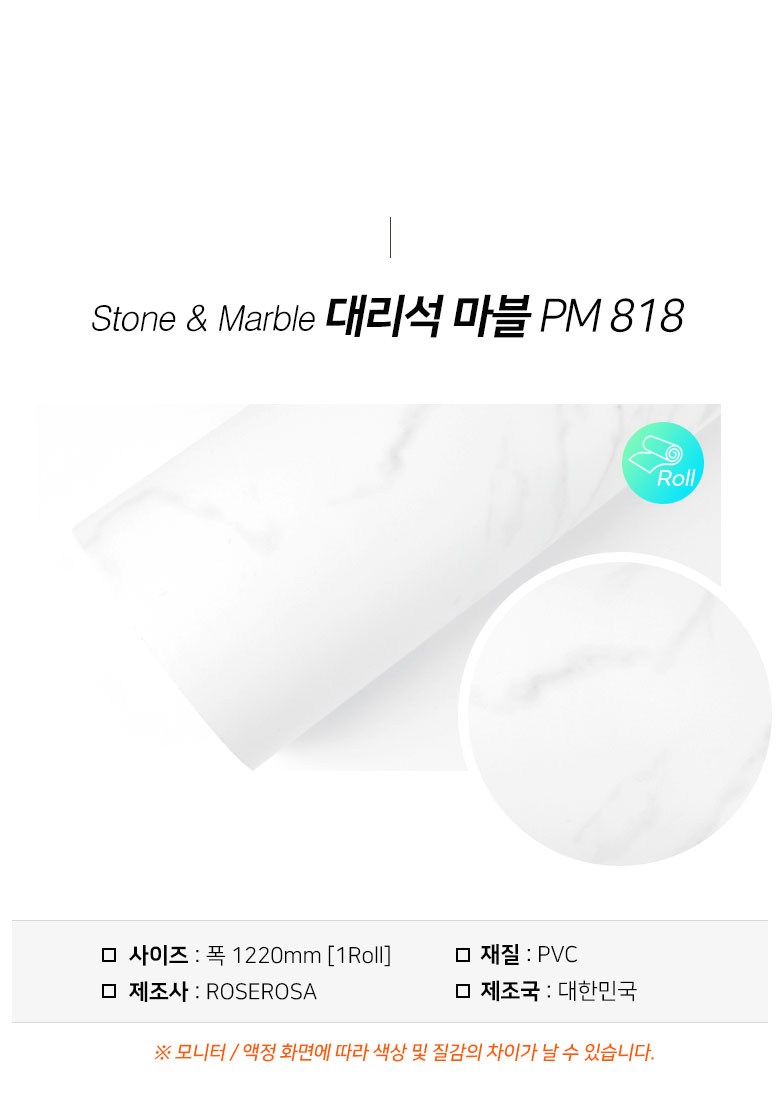 | 품명 및 모델명 | 로즈로사 에어프리 공법 인테리어 필름 대리석 마블 STYLE PM818 (size 1.22M×10M) | 인증/허가 사항 | 해당없음 |