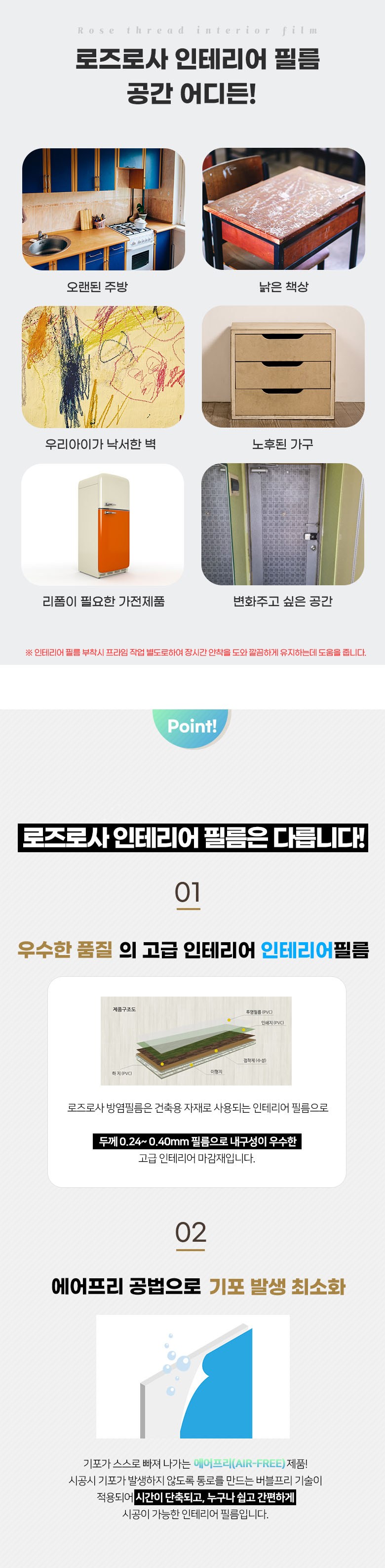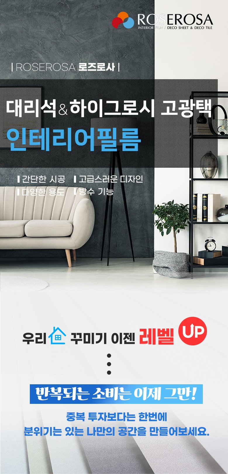 로즈로사 에어프리 공법 대리석 마블 인테리어 필름 시트지