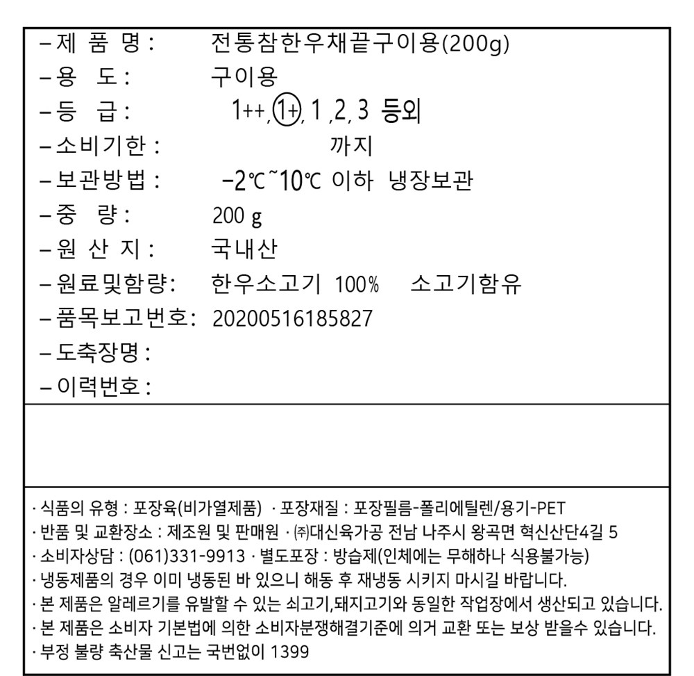 | 소비기한 또는 품질유지기한 | 소비기한(또는 유통기한) : 2026년 03월 09일 이거나 그 이후인 상품 | 세부 품목군별 표시사항 | 축산물 등급표시 : 1+등급 / 이력번호 표시유무 : 이력번호 표시제품임 |