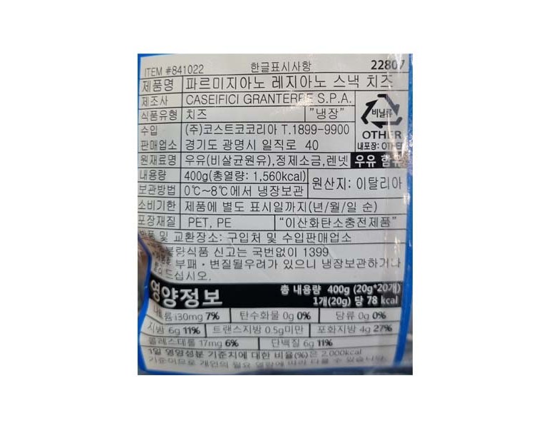 | 제품명 | 상품 상세페이지 참조 | 식품의 유형 | 상품 상세페이지 참조 |