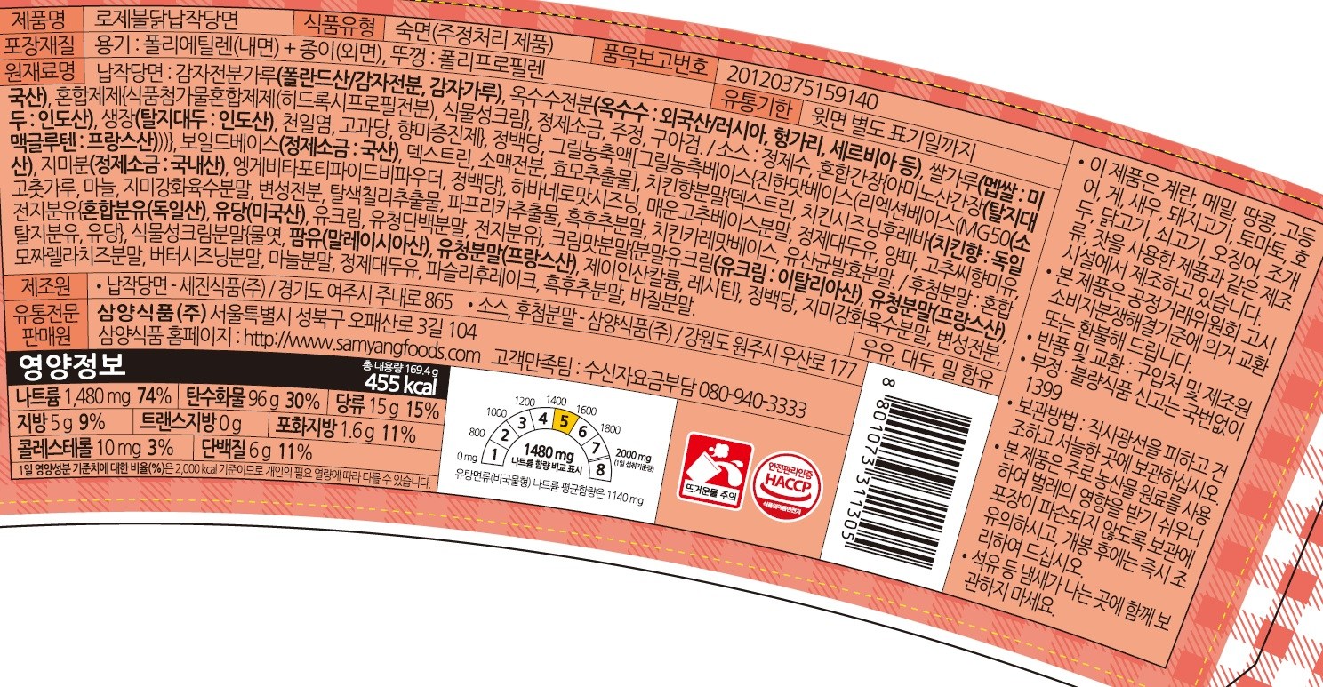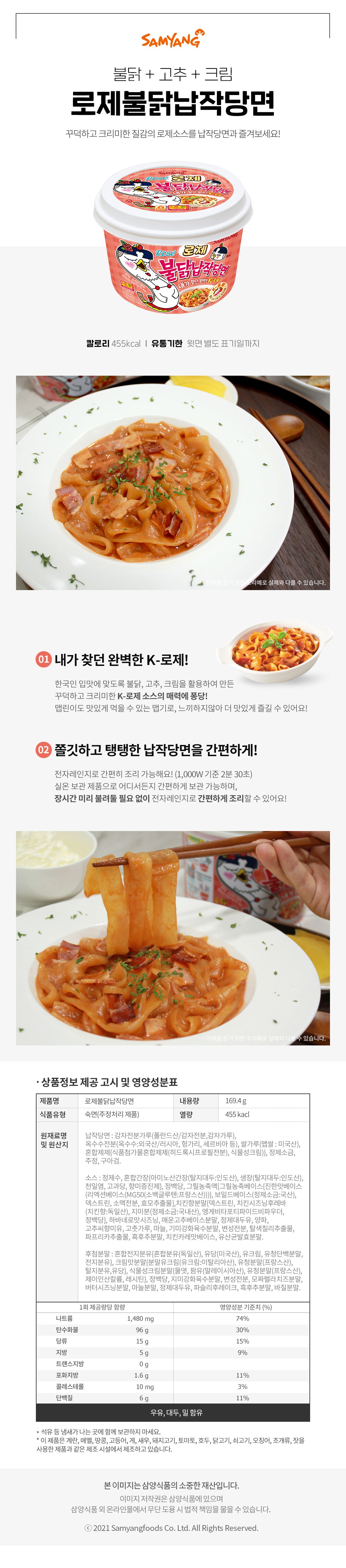 | 제품명 | 로제불닭 납작 당면 | 식품의 유형 | 컨텐츠참조 |
