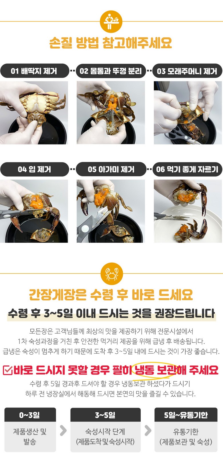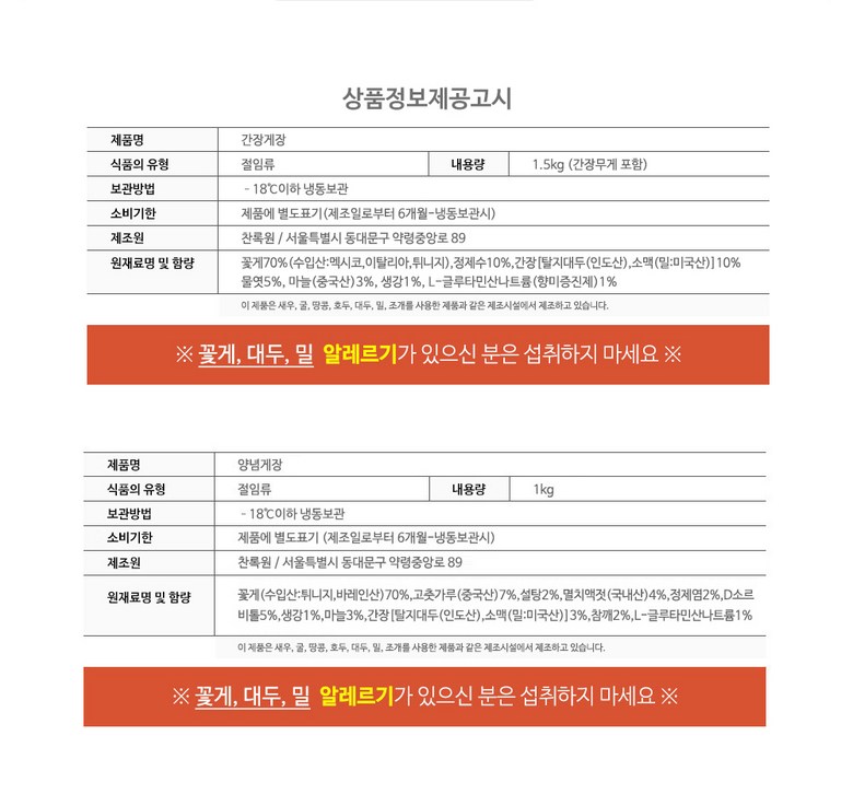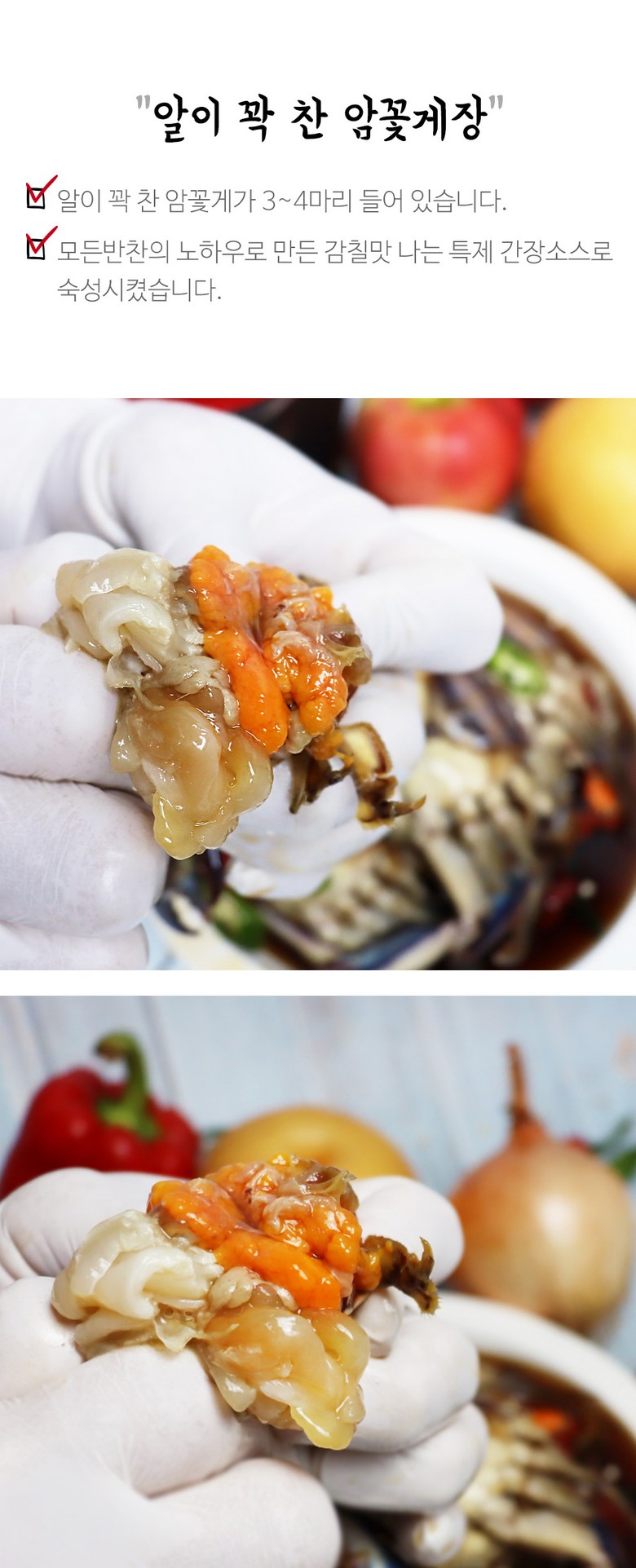 | 포장단위별 내용물의 용량(중량), 수량 | 2.5kg(양념게장 1kg+간장게장 1.5kg), 1 | 원재료명 및 함량 | 상품상세 설명 참고 |