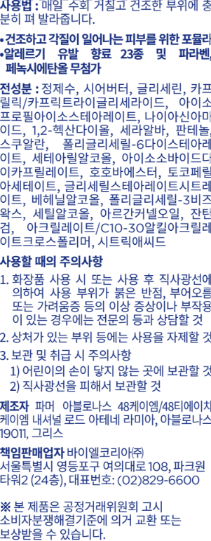 | 용량(중량) | 컨텐츠 참조 | 제품 주요 사양 | 모든 피부용 |