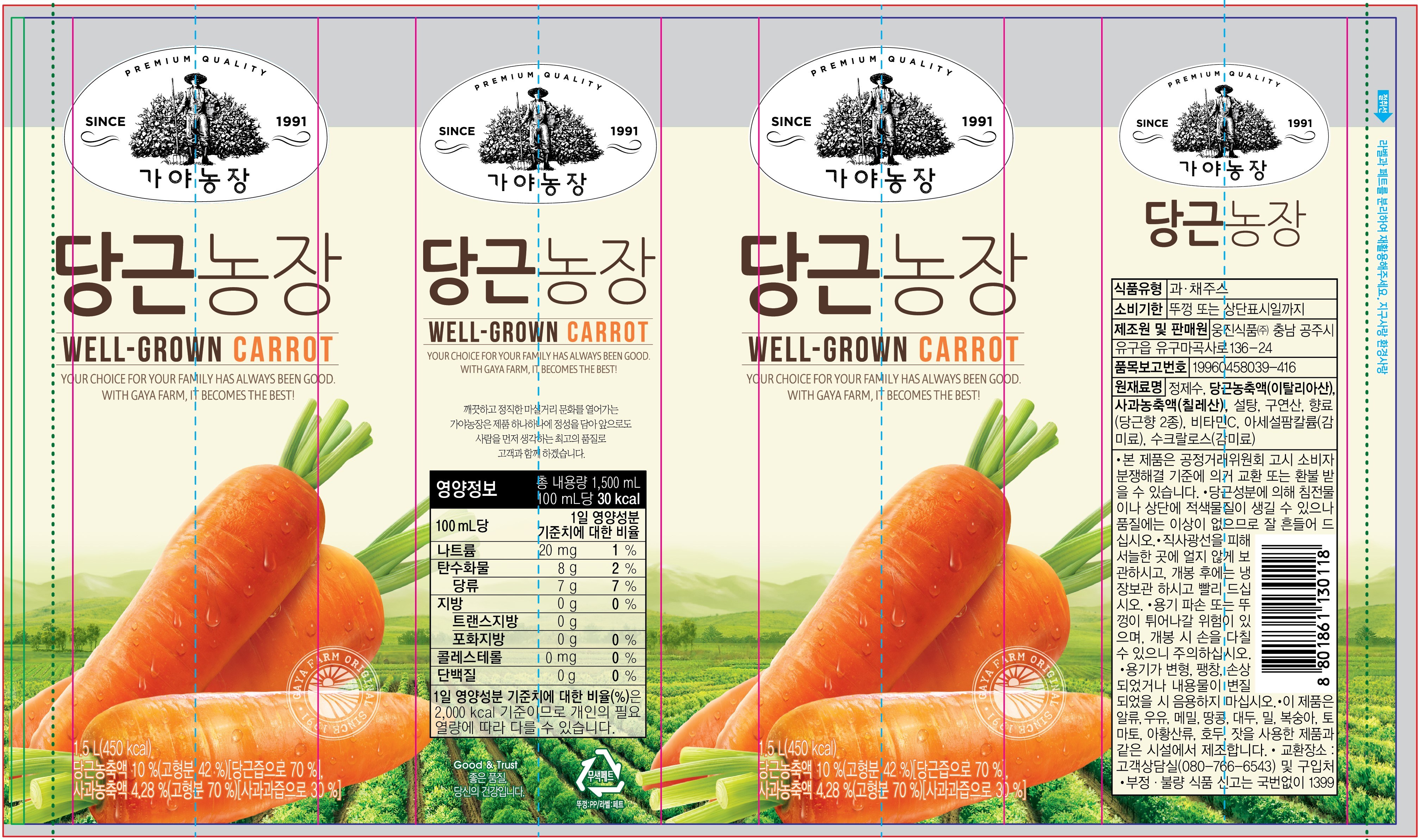 | 제품명 | 가야농장 당근농장 | 식품의 유형 | 과채주스 |