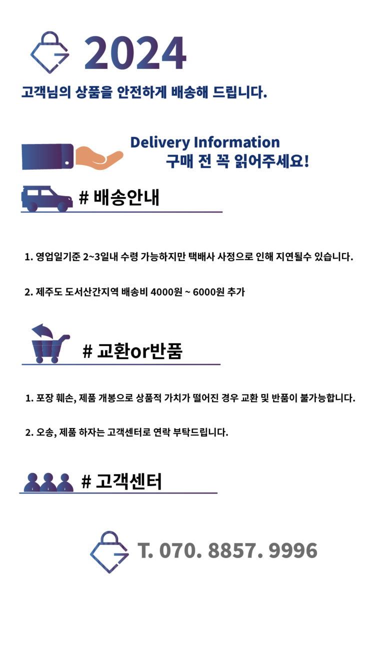 - ㆍ모니터 해상도의 차이로 인해 색상이나 이미지가 실제와 달라, 고객이 단순 변심으로 교환/반품을 무료로 요청하는 경우