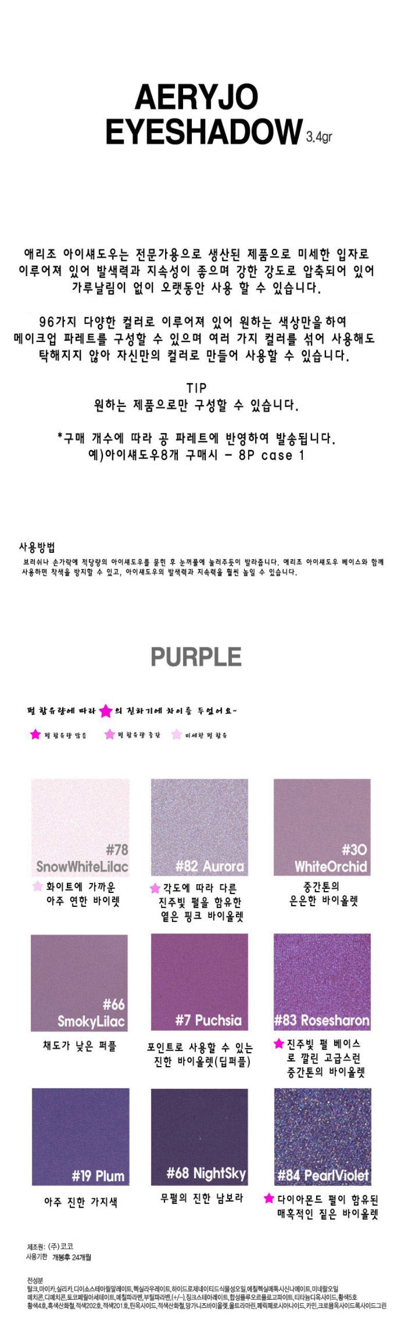 | 사용기한 또는 개봉 후 사용기간 | 본 상품은 해당 물류센터 직발송 상품인 관계로 제조연월일 및 사용기한 정보가 매번 변경되므로 상단 사용기한 정보를 참고해 주세요. | 사용방법 | 브러쉬나 손가락에 적당량의 아이섀도우를 묻힌 후 눈꺼풀에 눌러주듯이 발라줍니다. |
