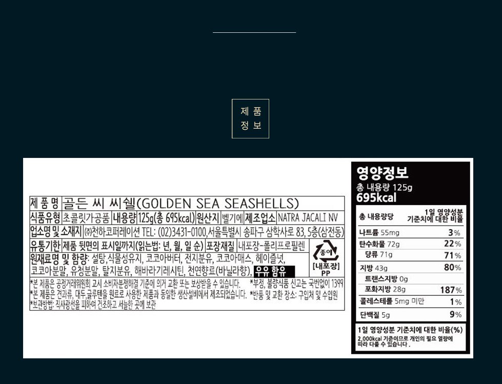 | 제품명 | 골든 씨 씨쉘 | 식품의 유형 | 초콜릿 가공품 |