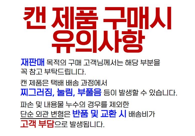 - ㆍ모니터 해상도의 차이로 인해 색상이나 이미지가 실제와 달라, 고객이 단순 변심으로 교환/반품을 무료로 요청하는 경우