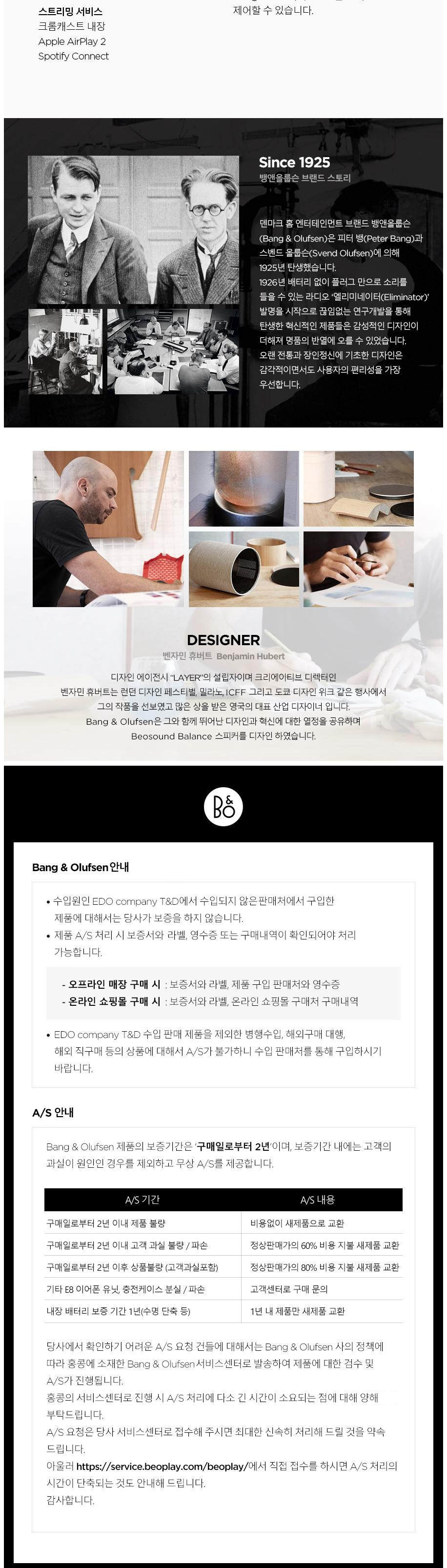 | 제조자(수입자) | BANG & OLUFSEN A/S/ (주)이도컴퍼니티앤디 | 제조국 | 덴마크, 중국,체코 (다양한 국가에서 제조되는 상품으로 랜덤으로 제공될 수 있습니다.) |