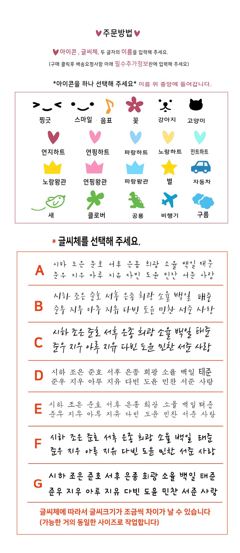 그외 장식에는 하트만 적어주시면 연지색으로 작업됩니다. )