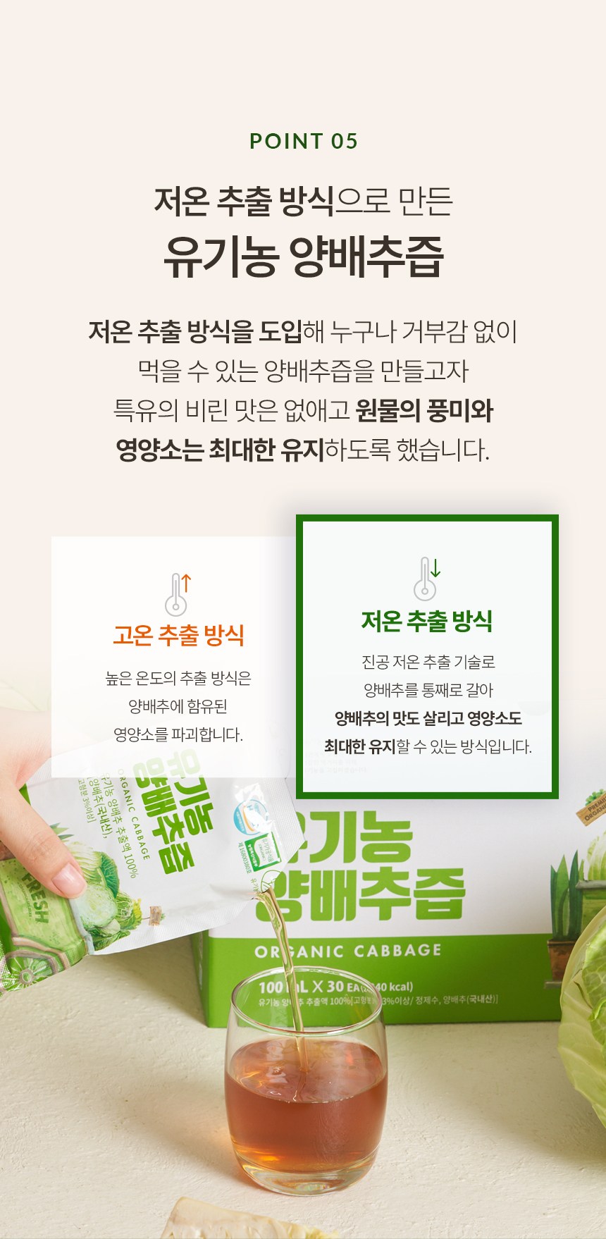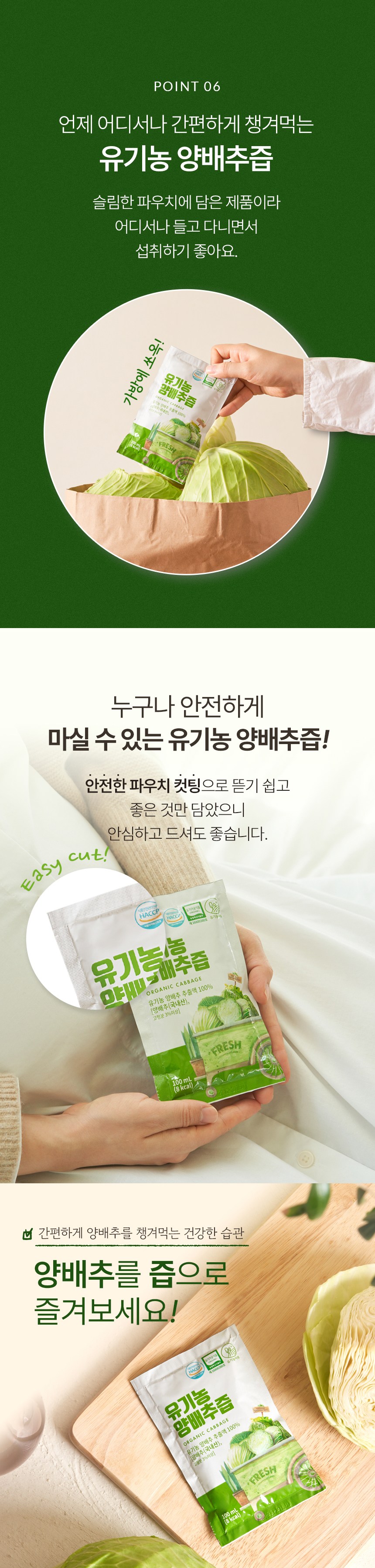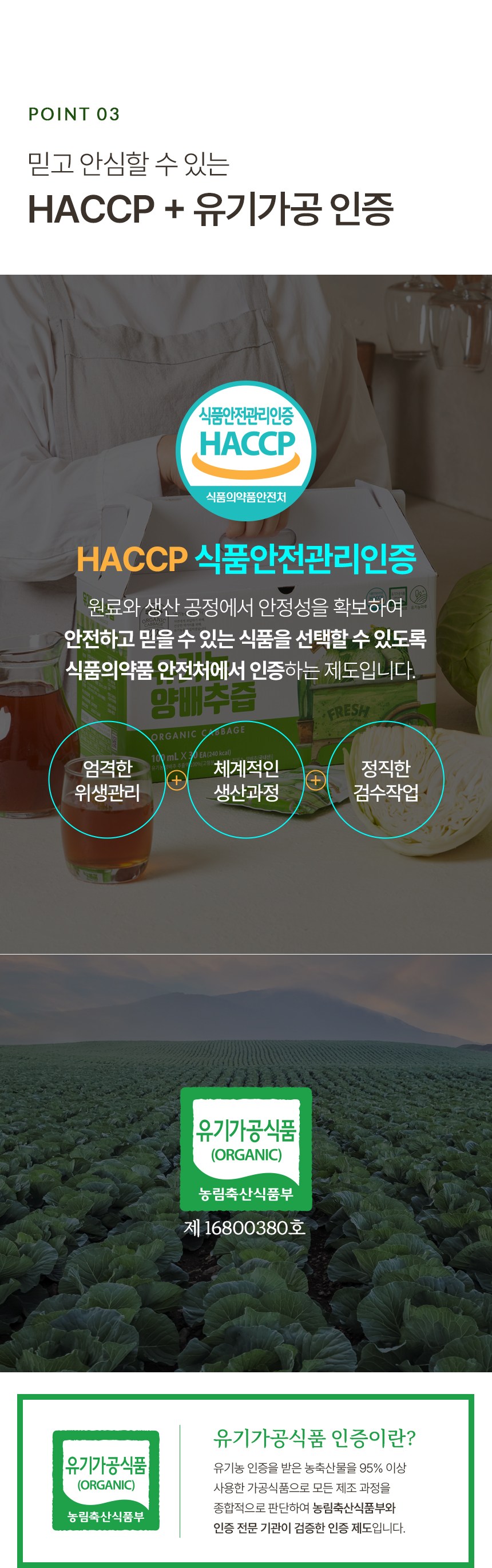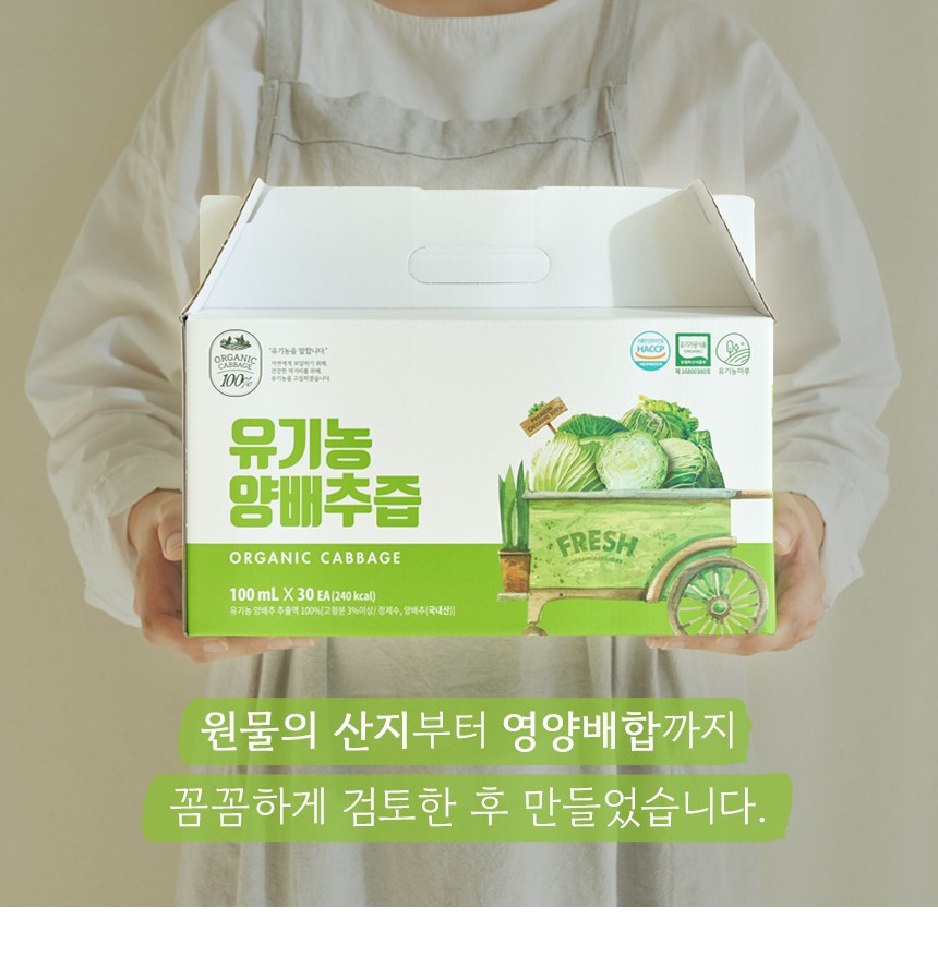 | 제품명 | 유기농 양배추즙 | 식품의 유형 | 컨텐츠 참조 |