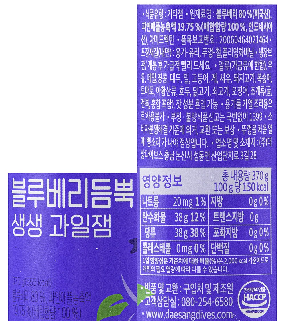 | 제품명 | 블루베리 듬뿍 생생 과일잼 | 식품의 유형 | 컨텐츠 참조 |